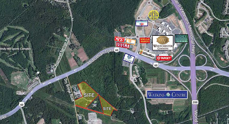 - Close proximity to Route 60 and S.R. 288 interchange and the Watkins Centre development