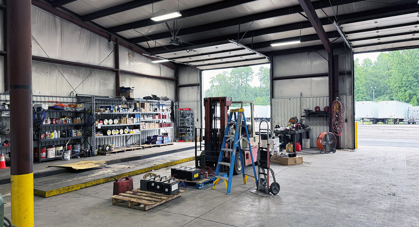 - Wash bay pad with concrete environmental containment located in rear