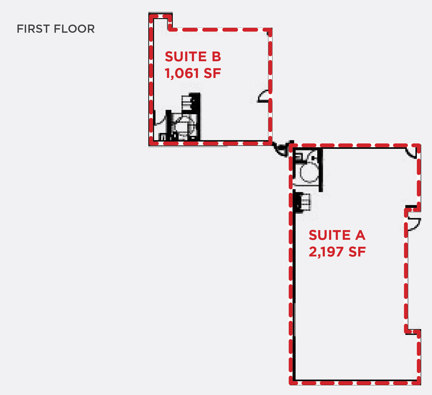 – 1st Floor – 1,061± sf office (suite B) 2,197± sf office (suite A)