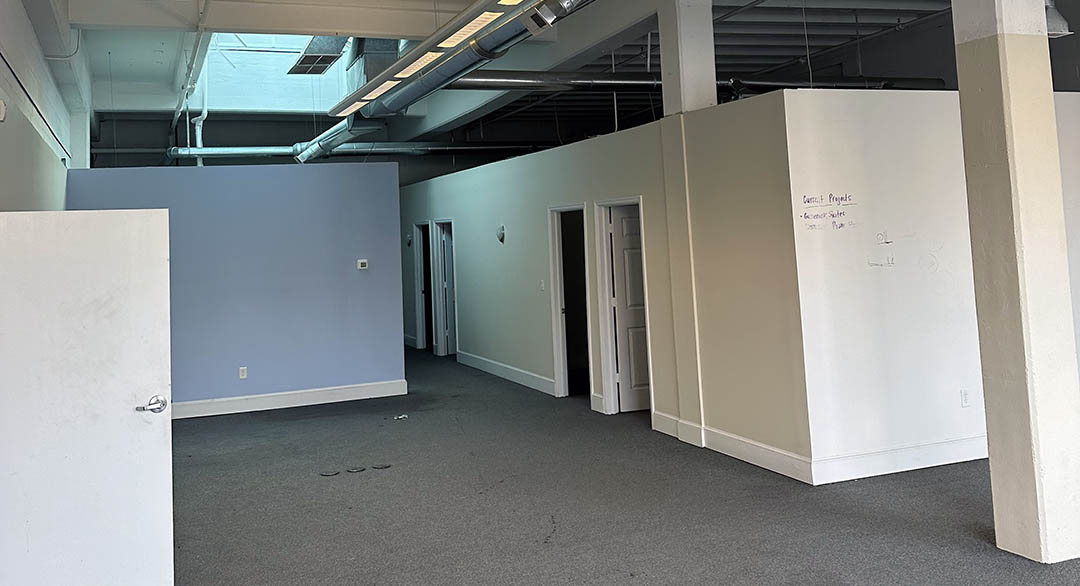 - Functional office space with private offices and break room