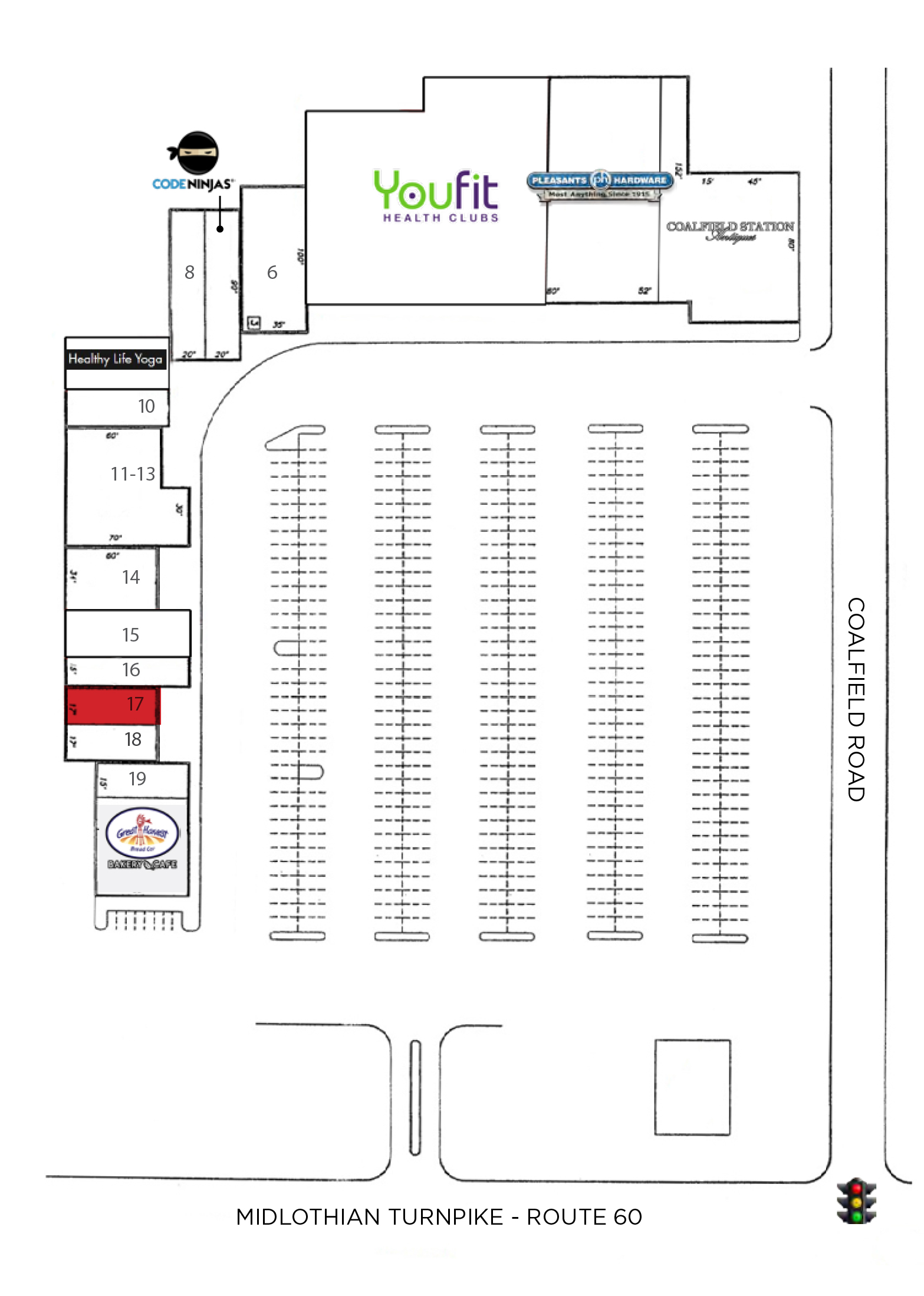 - Anchored by Youfit Health Club, Pleasants Hardware and Coalfield Station Antiques