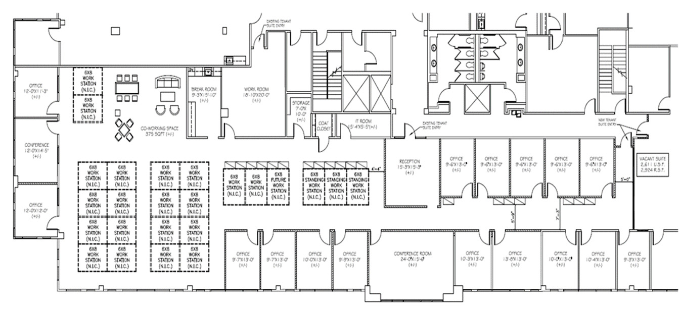 - 17 private offices, large conference room, open work space, and welcoming reception area
